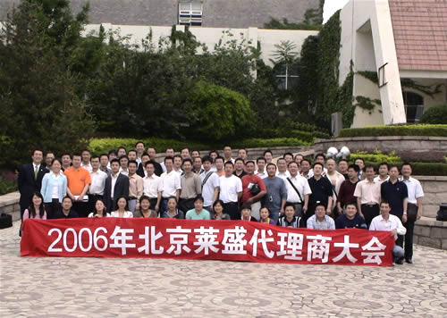 2006年5月18日,“北京萊盛2006年代理商大會(huì)”在北京召開(kāi),來(lái)自全國(guó)的優(yōu)秀代理商130多人受邀到會(huì)。本次代理商大會(huì)于5月18日晚在北京市中關(guān)村維蘭西餐廳進(jìn)行了盛大的歡迎晚宴,隨后代理商大會(huì)移至北京市昌平區(qū)西御園度假中心,由北京著名的培訓(xùn)機(jī)構(gòu)中歐國(guó)際管理咨詢有限公司高級(jí)講師周建,針對(duì)萊盛公司特點(diǎn)進(jìn)行了為期兩天的行業(yè)培訓(xùn),培訓(xùn)內(nèi)容涉及市場(chǎng)開(kāi)發(fā),銷售經(jīng)驗(yàn),市場(chǎng)競(jìng)爭(zhēng),售后支持等多個(gè)方面。每年一次的優(yōu)秀代理商會(huì)議是萊盛10年來(lái)保持的一貫傳統(tǒng),在了解全國(guó)行業(yè)市場(chǎng),聽(tīng)取經(jīng)銷商建議意見(jiàn)的同時(shí),也為萊盛全國(guó)各地區(qū)的優(yōu)秀代理商們提供一個(gè)交流感情、探討銷售經(jīng)驗(yàn)的機(jī)會(huì)。